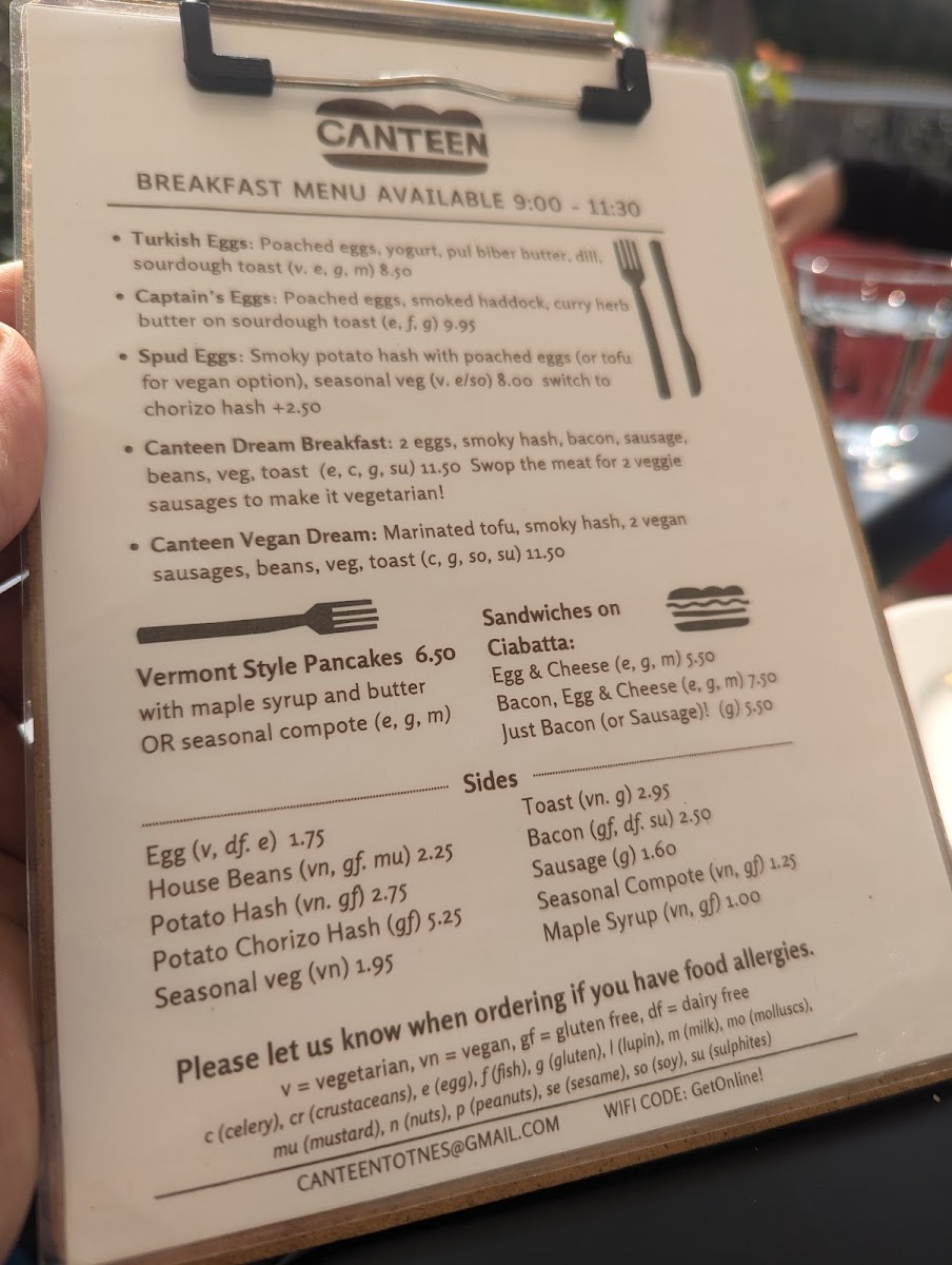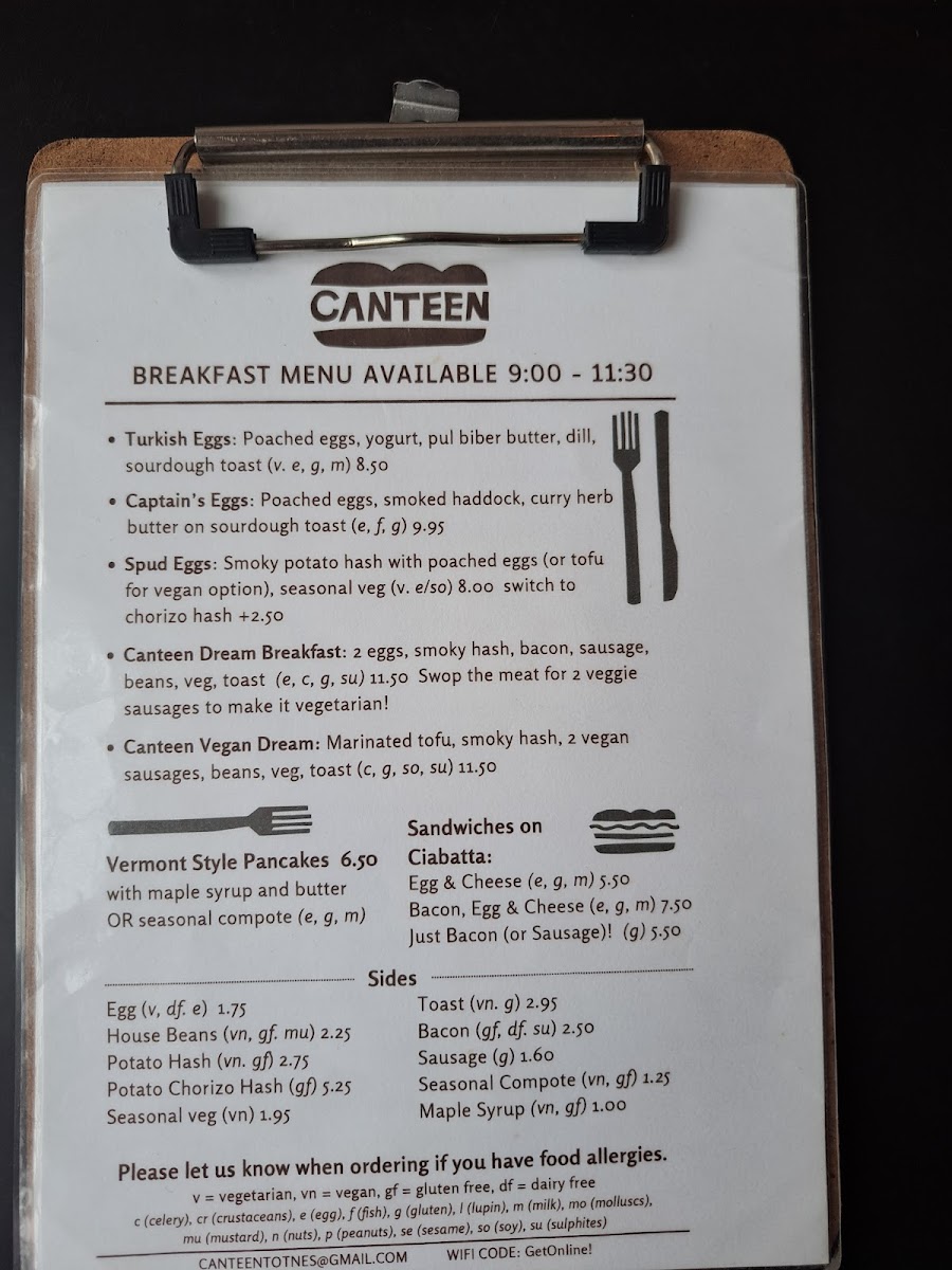 Welcome to Canteen, a charming café nestled in the heart of Totnes, United Kingdom. The menu here is a delightful blend of creativity and comfort, featuring standout options like the Cocoa Coffee Skirt Steak Sandwich and the locally beloved Lamb Burger, both prepared with fresh, locally sourced ingredients. For breakfast enthusiasts, the Turkish Eggs and the hearty Canteen Dream Breakfast set a wonderful tone for your day.